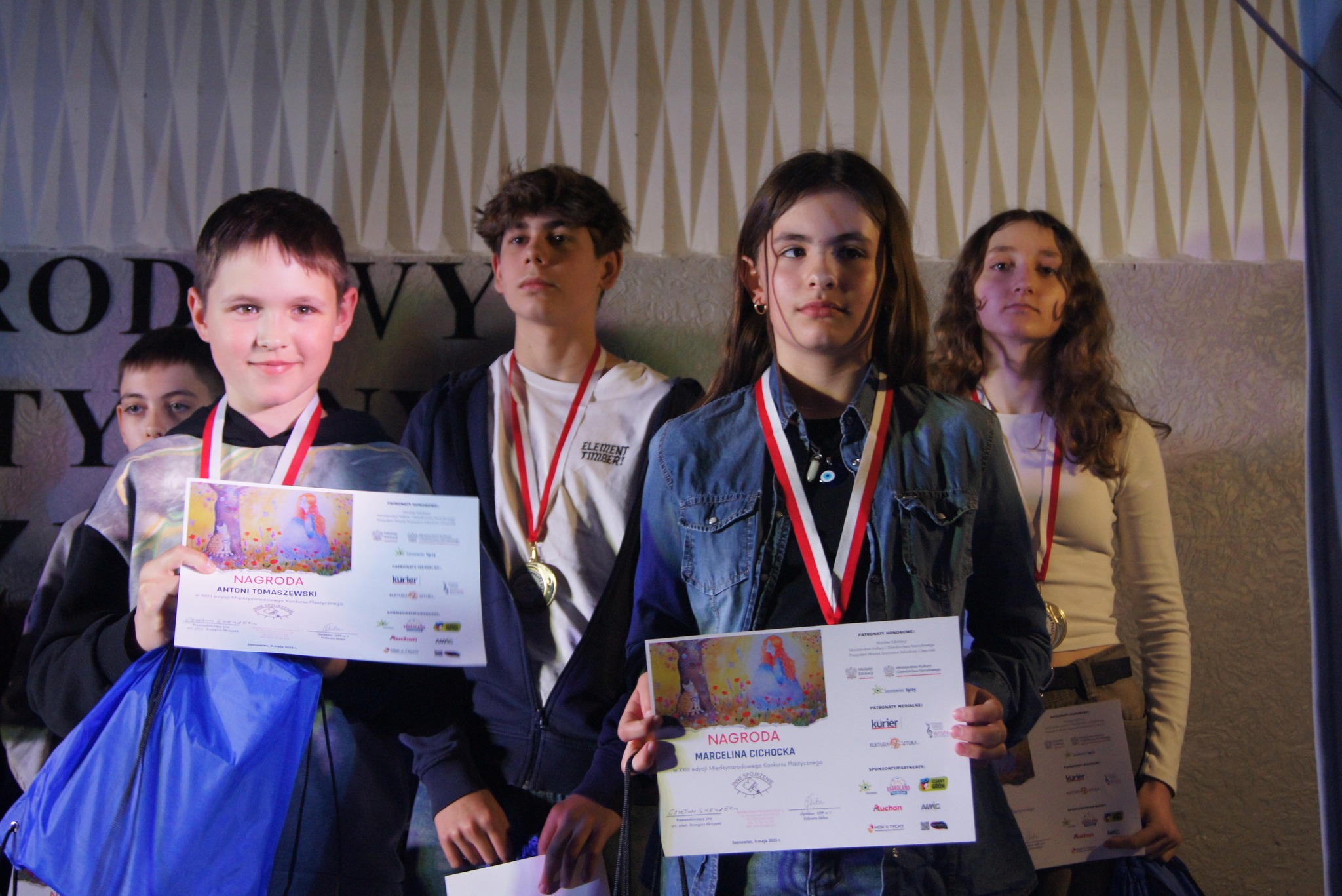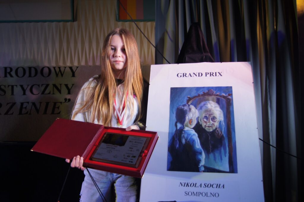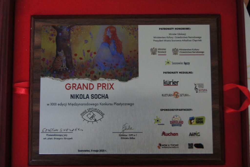 W piątek, 9 maja, pięć utalentowanych dziewcząt z naszej pracowni plastycznej M-GOK w Sompolnie wyruszyło w niezwykłą podróż do Sosnowca, by odebrać nagrody zdobyte w 23. Międzynarodowym Konkursie Plastycznym „Inne Spojrzenia”. Wśród 1047 nadesłanych prac, reprezentujących różnorodne spojrzenia na sztukę z wielu krajów, nasze młode artystki udowodniły, że ich talent i wrażliwość zasługują na najwyższe uznanie. Największy sukces naszej pracowni to zdobycie Grand Prix przez Nikolę Sochę! To prestiżowe wyróżnienie jest dowodem na jej niezwykłe umiejętności twórcze i kreatywną wizję. Spośród setek zgłoszonych prac to właśnie jej dzieło zachwyciło jury, co stanowi ogromne osiągnięcie, nie tylko dla niej, ale i dla całej naszej pracowni. Do grona nagrodzonych dołączyła także Marcelina Cichocka, która otrzymała nagrodę, a Łucja Dzwoniarkiewicz, Michalina Stefaniak i Nadia Śniegowska zostały uhonorowane wyróżnieniami. Ich prace, pełne wyobraźni i pasji, znalazły się w gronie najlepszych, co jeszcze bardziej podkreśliło artystyczny poziom naszej grupy. Atmosfera uroczystości była niezwykle podniosła, wypełniona szacunkiem dla twórczości i młodych talentów. Konkurs zgromadził prace z Bułgarii, Tajwanu, Czech, Słowacji, Ukrainy, Rumunii, Chin, Francji i Wielkiej Brytanii, stając się dowodem na to, że sztuka przekracza granice, języki i kultury, łącząc ludzi w pasji tworzenia. Z nagrodami w dłoniach i dumą w sercu dziewczęta wracały do Sompolna, wiedząc, że ich ciężka praca została dostrzeżone i docenione na międzynarodowej scenie. To był dzień pełen emocji, wzruszeń i triumfu, który na zawsze zapisze się w historii naszej pracowni jako wyjątkowy moment artystycznej chwały!