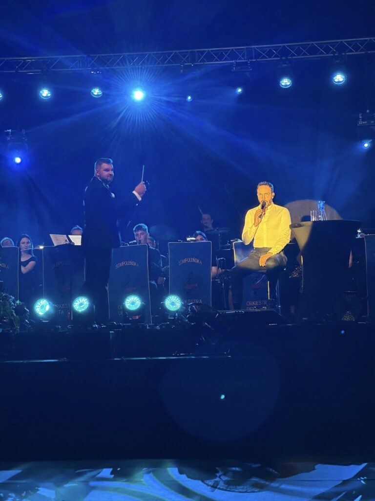 Koncert został podzielony na dwie części – najpierw na scenie wystąpiła orkiestra z mażoretkami, a następnie mieliśmy ogromną przyjemność towarzyszyć wyjątkowej gwieździe – Sławkowi Uniatowskiemu. Jego głos to prawdziwy balsam dla duszy, który wprowadził wszystkich w magiczny nastrój.
