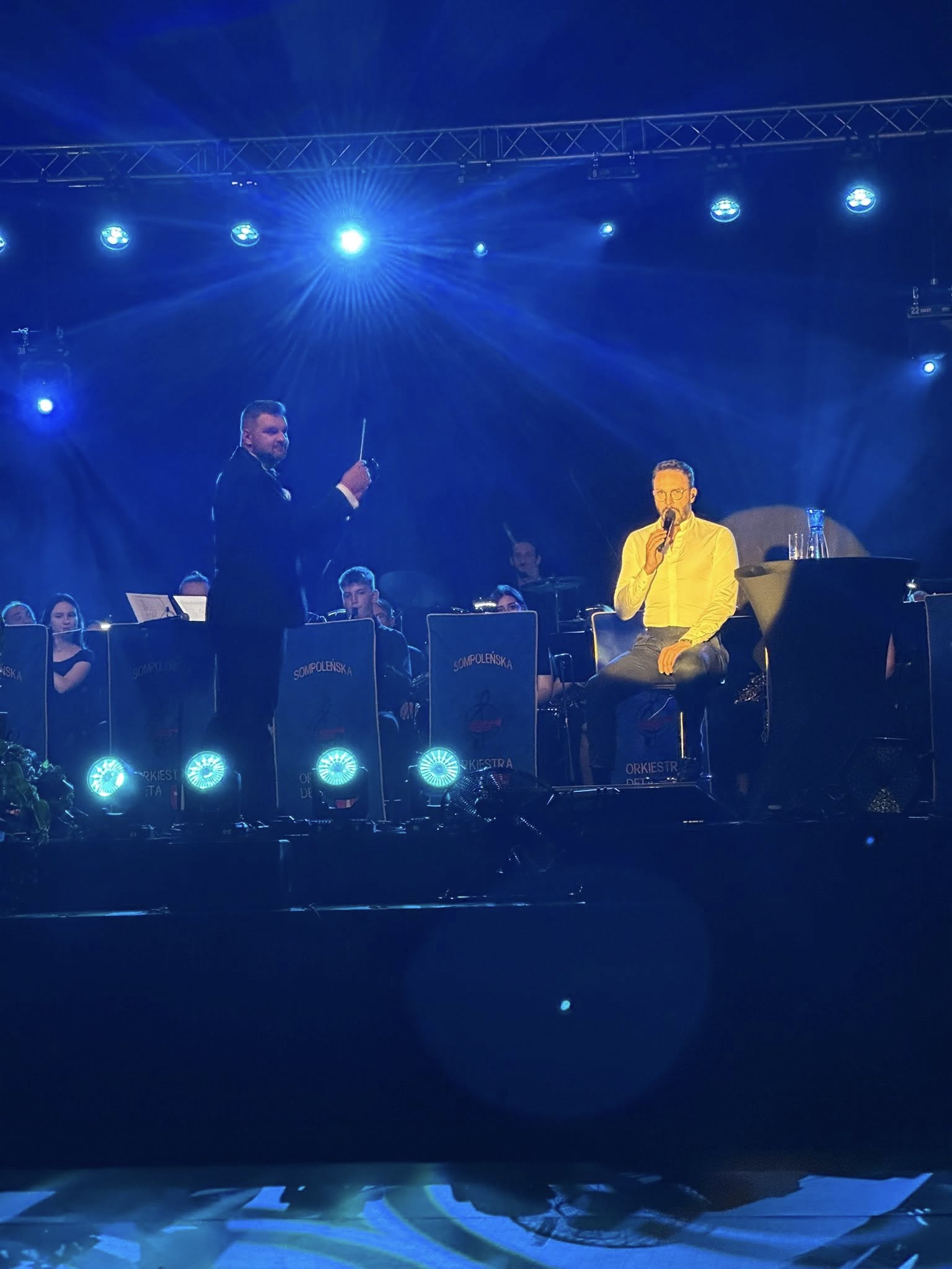 Koncert został podzielony na dwie części – najpierw na scenie wystąpiła orkiestra z mażoretkami, a następnie mieliśmy ogromną przyjemność towarzyszyć wyjątkowej gwieździe – Sławkowi Uniatowskiemu. Jego głos to prawdziwy balsam dla duszy, który wprowadził wszystkich w magiczny nastrój.